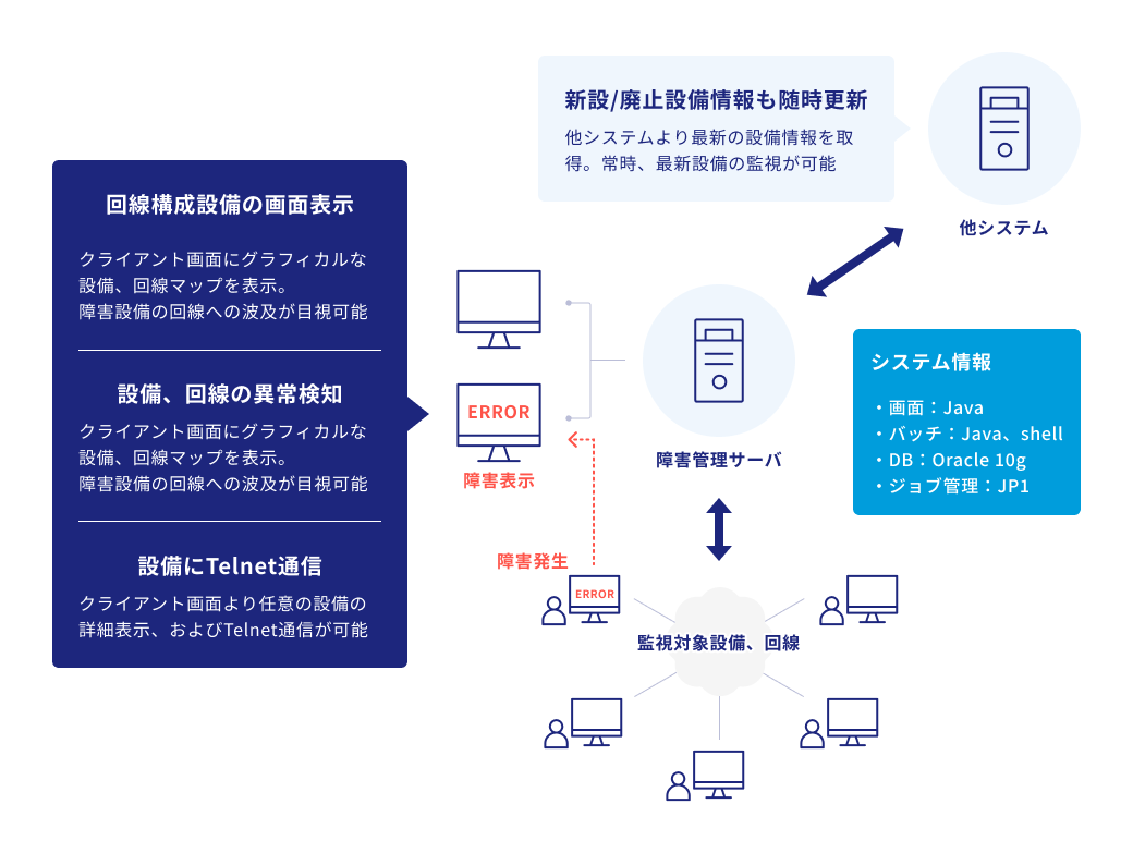 通信系の業務ノウハウと通信系のパッケージ・ミドルウェアでの開発実績をベースに、Java、XML、Weblogic、Oracleなど多岐にわたる技術要素により開発・維持管理を対応。